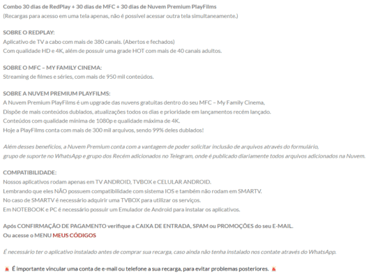 Você está adquirindo o Recarga EPPI CINEMA + RED + Nuvem Premium PlayFilms Anual.